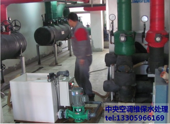 螺桿式冷水機(jī)冷凝器極易結(jié)垢,正常在夏季供冷期應(yīng)該做日常水處理,否則在高硬度水質(zhì)的環(huán)境下運(yùn)行,循環(huán)水系統(tǒng)內(nèi)溶于水中的無機(jī)鹽就會(huì)隨著溫度的升高結(jié)晶析出,在冷凝器換熱面管壁上形成水垢,導(dǎo)致熱交換效率降低。同時(shí)硬垢增加,則能耗上升,結(jié)硬質(zhì)水垢1mm厚時(shí)會(huì)增加6%—8%。 ![]() 1、將冷卻水進(jìn)出冷凝器的閥門關(guān)緊,利用溫度計(jì)管、壓力表管或排污管連接防腐泵、配液箱做成小循環(huán)系統(tǒng),循環(huán)清洗。 2、先加入酸洗緩蝕劑,此藥劑為專用銅緩蝕劑,它附著在冷凝器金屬內(nèi)壁上,防止酸和金屬發(fā)生反應(yīng)。 3、加入固體酸洗清洗劑,用于清洗碳酸鈣垢為主要成份的水垢,清洗劑是復(fù)合固體有機(jī)酸,白色晶體,對(duì)金屬的無腐蝕性,為弱酸;清洗劑用量按設(shè)備結(jié)垢量而定。 4、加入泥垢剝離劑(可選),如果冷凝器設(shè)備結(jié)垢較厚時(shí),需要添加泥垢剝離劑,促進(jìn)水垢反應(yīng)后的生成物快速溶于水,加快深層水垢反應(yīng)。 5、加入中和鈍化劑,在冷凝器進(jìn)行化學(xué)清洗后,中化殘酸,防止金屬表面氧化而生成二次浮銹。 6、清洗工藝 清洗溫度:一般采用常溫清洗,如果結(jié)垢較厚可以在40—50℃清洗以提高清洗速度。 將進(jìn)出機(jī)組的閥門關(guān)上,利用壓力表或溫度計(jì)管、防腐泵、酸液箱連成清洗循環(huán)系統(tǒng)。清洗時(shí)先加入緩蝕劑,緩蝕劑循環(huán)均勻后緩慢加入有機(jī)酸,清洗中應(yīng)定時(shí)檢測(cè)反應(yīng)情況,清洗劑不足時(shí)需補(bǔ)足,以保證有足夠的酸液和水垢反應(yīng),清洗中按水垢反應(yīng)情況,可加入適量泥垢剝離劑、消泡劑等。 清洗結(jié)束后,要將余液排出,并加入清水沖洗。 冷凝器清洗后還需要加入中和鈍化劑,中和殘酸,以防止金屬內(nèi)壁氧化。 冷凝器清洗時(shí)間為5~10小時(shí)左右,按實(shí)際情況而定。 |